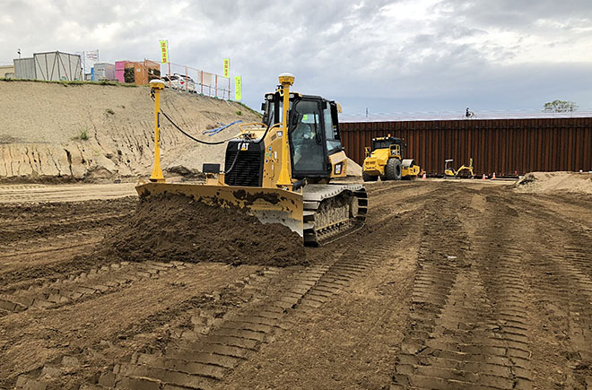 また、当工事においては情報化施工技術を全面的に活用し、MCバックホウ、MCブルドーザー(※2)を使用し施工しており、この技術を活用することで、品質・安全性が向上、さらには施工の効率化により労働時間の大幅な削減につながり、工事着手から現在まで完全週休2日制を実施しています。
